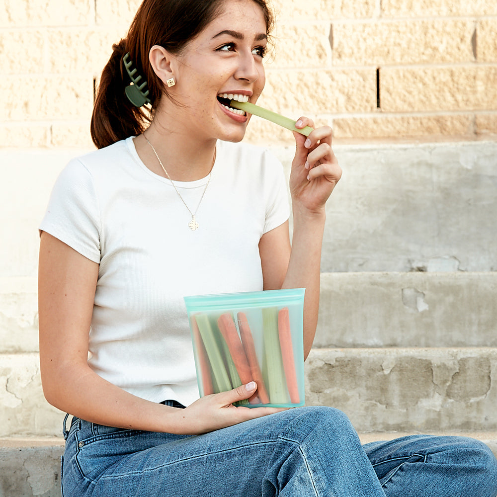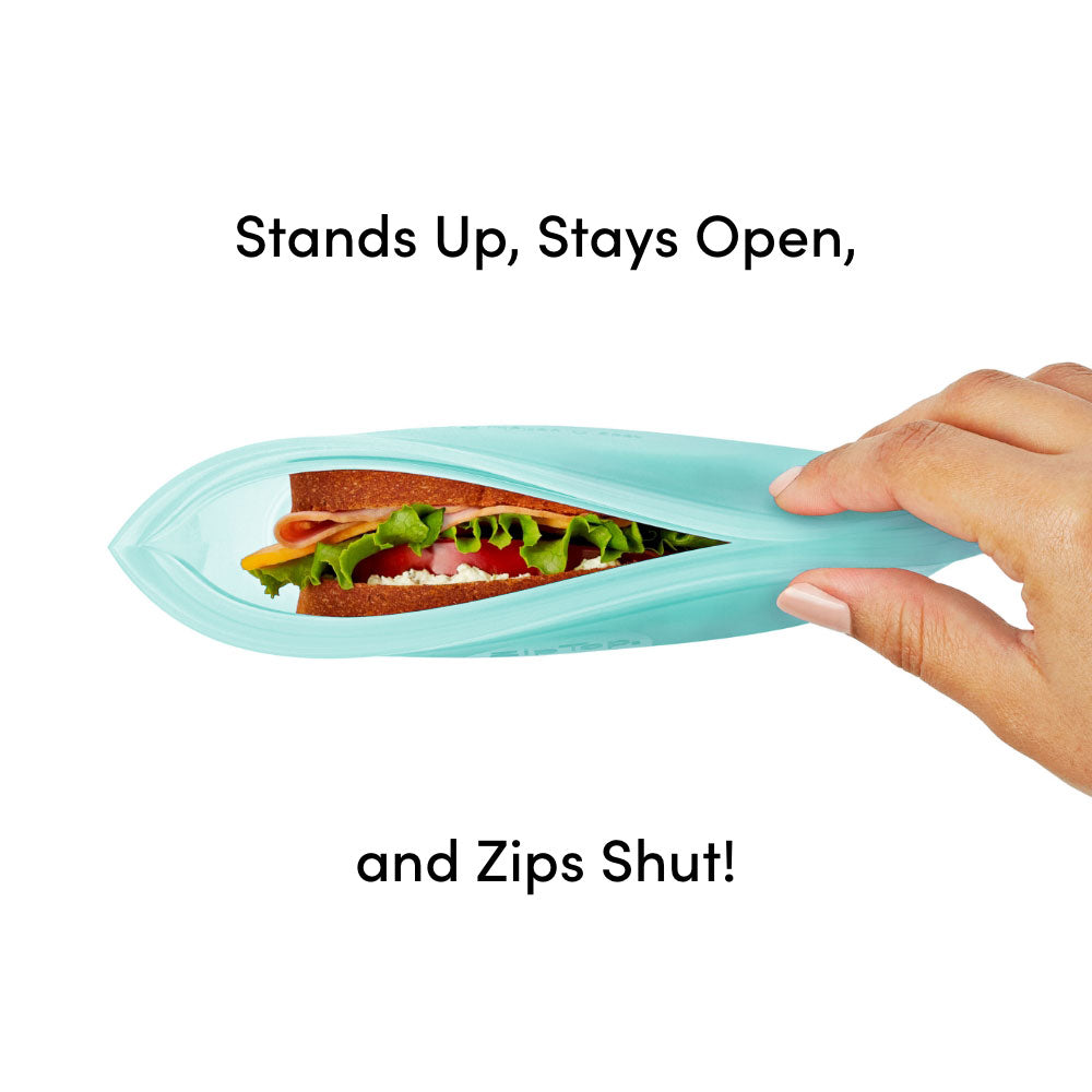 Say goodbye to floppy bags and single-use plastic trash. The first sandwich bag that stands up, stays open and zips shut. Perfect for snacks and lunches at work, school or wherever.